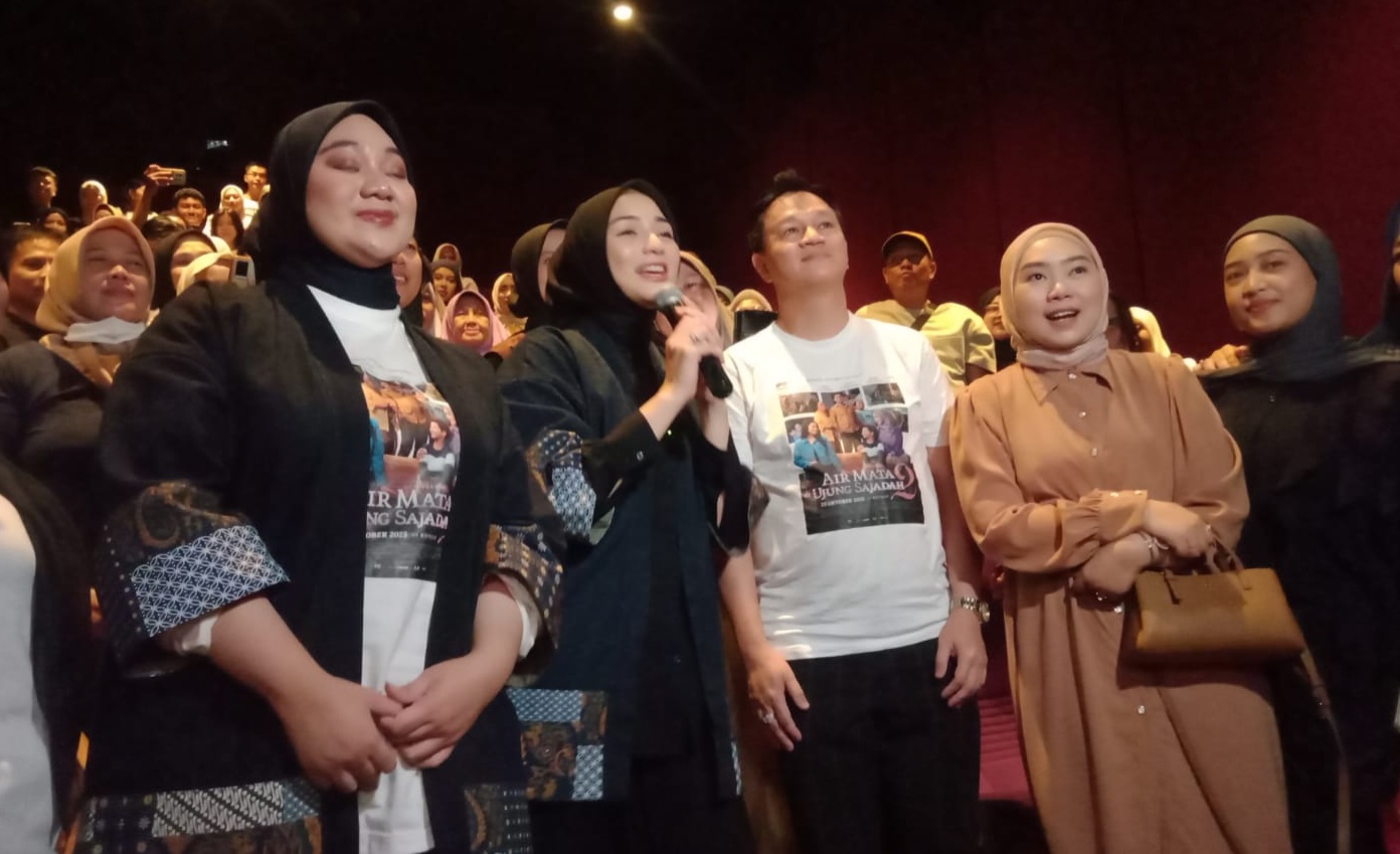 Bandarlampung – Citra Kirana, pemeran “Mama Yumna” dalam film Air Mata di Ujung Sajadah 2, menyapa langsung penonton di bioskop XXI Mall Kartini, Minggu (28/9/2025). Kehadirannya membuat suasana semakin meriah karena penonton bisa berinteraksi langsung dengan aktris populer tersebut.